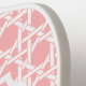 This stylish monogram pickleball paddle design features a modern pink and white woven rattan cane pattern on the front and back. The front side has a notched pink frame with an initial in white.
