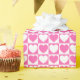A wrapping paper built with a pink and white chequered pattern with hearts in large size. Customise the white background colour among several options.