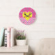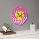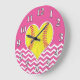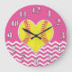 Pink and White Chevron and Yellow Softball Heart Softball Wall Clocks for Girls. Super cute softball heart with glassy looking pink softball stitches set off by popular white chevron design on hot pink background. Change the Pink to ANY COLOR background or call me, Linda to Change the white chevron, the yellow softball or the pink softball stitching for you at no extra charge. CALL Linda at: 239-949-9090
