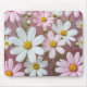 Delicate pink and white daisy flowers with yellow centres are set against a soft, blurred pink background