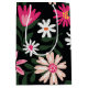 Pink and white daisy design on black.