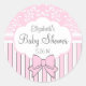 Very pretty, vintage look pink floral damask and stripes background, with a pretty bow baby shower sticker. Personalised with your name and shower date! The small size sticker is perfect for envelope seals or attach to a metal circular tag and attach to a bag of cookies!. Larger size is great for paper plates, cups and balloons and baby shower guest gifts. Add matching products like invitations and baby shower guestbook. This "Damask Baby Shower Sticker" is available in other colours-Please visit my store "The Hungarican Princess" at www.zazzle.com/hungaricanprincess*. Look in my "Oh Baby" department category.