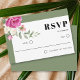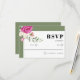 Pink and white flowers and branch sage green weddin RSVP card. This floral wedding design showcases a white frame adorned with delicate pink rose flowers and a branch, elegantly placed in the upper left corner. The sage green borders add a touch of sophistication to the design, while the bold typography of the minimal text creates a modern and stylish look. The back of the invitation is beautifully coloured in a soothing shade of sage green, completing the overall elegant and timeless aesthetic.