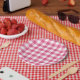 Pink And White Gingham Check Pattern Paper Plate