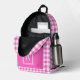 Pink and White Gingham Check Plaid Monogram Printed Backpack