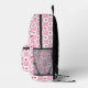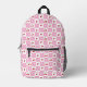 A whimsical pink and white Gingham pattern backpack with a cherry theme .