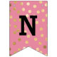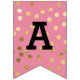 Alternating panels of candy pink and white with a scatter of faux gold glitter dots make this "congratulations" banner a fun and classic addition to your celebration. Use for graduations, promotions, engagement parties and any other occasion worth celebrating. The letters can be changed by using the "Customise it" option!