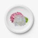 Lovely hydrangeas in beautiful colours of bright pink and white accent this paper plate. Beautiful garden flowers. Add a name or words, great for a bridal shower or wedding.
