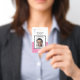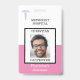 Pink and White Photo Medical Facility Name Badge. Health Industry Icon.