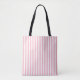 Pink and White Medium Vertical Stripes Pattern Tote Bag