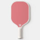 This modern pickleball paddle design features a pink background, with your initial in bold white text for a look that is simple and stylish, yet professional.