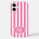 Pink and White Monogrammed Stripes Case-Mate iPhone Case