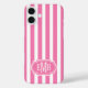 Pink and White Monogrammed Stripes Case-Mate iPhone Case