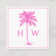 Pink and White Palm Palmetto Tree Monogram Square Business Card