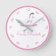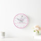 Pink and White Rocking Horse Theme Round Clock