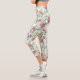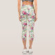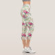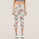 Pink and White Rose Bouquet on White Capri Leggings