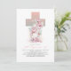 Botanical pink and white flowers cross elegant baptism invitations