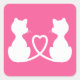 Pink And White Silhouette Of Two Cats In Love Square Sticker