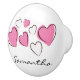 Pink and White Sketchy Hearts Ceramic Pull or Knob, with customisable personalisation.