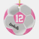 Pink and White Soccer Ball Ceramic Ornament