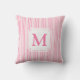 This pink and white striped pillow has a trendy Palm Beach aesthetic when combined with a tropical leaf pattern. You can personalise this pillow with your monogram.