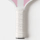 This pink and white striped pickleball paddle has a trendy Palm Beach aesthetic.