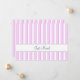 A custom New Address / Just Moved card with editable text in script and block letters front and back. The background has pink stripes light and dark with grey edges in a simple, classic background pattern.
