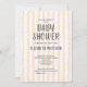 Personalise these girl baby shower invitations featuring pink and white stripes and yellow confetti dots. MATCHING items in our store.