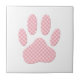 Pink And White Tartan Dog Paw Print Ceramic Tile