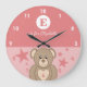 Pink and white with a cute teddy stars baby name large clock