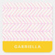 Fun and modern pattern of pink chevron lines with a yellow border, personalised with your name.