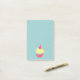 Large sized sticky notes with a yellow frosted cupcake with a pink bottom and a cherry on top. Background is a retro coloured light green.
