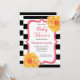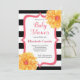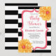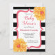 Beautiful yellow flowers, black and white stripes and pink baby shower invitation for a mother-to-be.