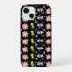 Pink and Yellow Spring Floral Pattern on Black - i iPhone 15 Case