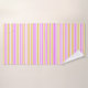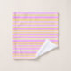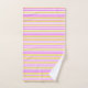 Stripes in pink yellow and white bath towel set. The white towel background colour can be changed to suit your style. Beautiful gift idea, personalise with a name. The stripe print image is also removable.