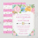 Gorgeous Watercolor Pink, Yellow and Blue Summer Flowers design with gold glitter confetti and stripes background