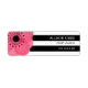 A return address label featuring a hot pink anemone flower and black and white stripes. Look for matching wedding invitations and other coordinating items at Jill's Paperie.