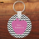A teacher gift featuring an illustration of a pink apple over a black and white chevron background. Personalise with your name over apple.