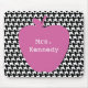 A personalised gift for teachers featuring an illustration of a pink apple over a black and white houndstooth background. Personalise with your name.