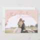 Elegant and minimal wedding thank you photo card featuring a large pink arch frame with a script font that says "thank you" at the top. You can add a second picture on the back with a message.