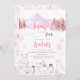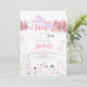 Celebrate your little girl special day with this adorable Pink Arctic Animals Birthday Invitation. Featuring charming arctic animals, delicate pink snowflakes, frosty pink mountains, and pastel pine trees. This invite sets the scene for a magical winter wonderland party, perfect for a girl's winter birthday celebration. Whether you're hosting indoors or outside in the snow, this invitation adds a frosty touch of fun to your winter celebration. BRT189