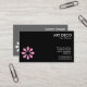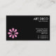 A clear stylish and attractive business card template with a simple but attention grabbing art deco style flower or star symbol. Main company details on the front, with name and personal contact on the back, on a grey background with a white version of the symbol.