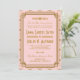 These wedding invitations feature a pink and gold colour palette, a geometric frame, geometric patterns, and other stylistic details all inspired by Art Deco and the roaring twenties. You can customise the sample text fields to your liking.