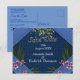 Pink arty Flowers on Blue-fabric texture Announcement Postcard