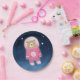 Brighten your table with this whimsical round paper plate featuring a cuddly teddy bear in a pink astronaut suit drifting through a magical, star-studded galaxy. The enchanting navy and pastel pink palette makes it perfect for baby girl showers, cosmic birthday parties, or any out of this world celebration. With its sweet, playful art and space themed charm, this design brings a sense of wonder, fun, and adventure to your event making every meal feel like a cosmic journey.