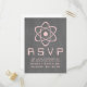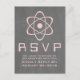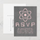 Cute and nerdy Atomic Chalkboard Wedding Response Card featuring a simple atomic symbol in light pink on a chalkboard look background. This geeky and fun wedding RSVP postcard is perfect for the science enthusiast couple! Easy to customise, simply add the details of your wedding in the spaces provided. Click "Customise It" to find more personalisation options.
