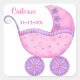 Pink Baby Buggy Boy Name Birth Date Announcement Square Sticker