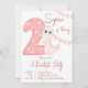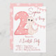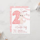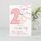 Pink cute baby dinosaur 2nd birthday party invitation.
