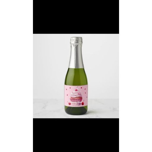 Pink Baby First Cherry & Cupcake Birthday Party Sparkling Wine Label
