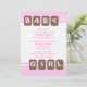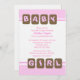 Pink Baby Girl is pink bordered Baby shower invitation card with quirky dancing pink letters on brown rounded squares, ideally for upcoming baby girls. © Morning 6
